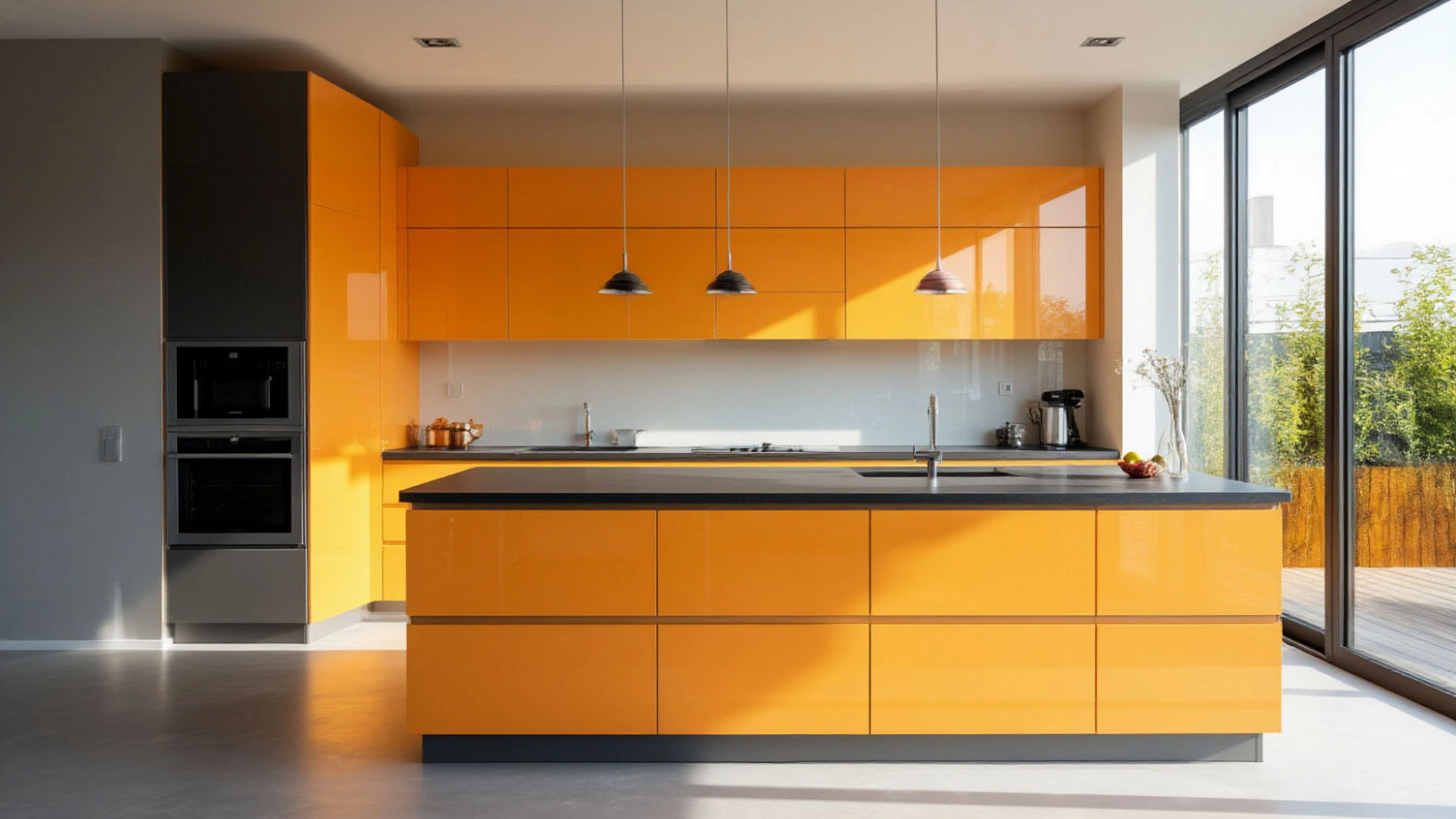 Глянцевый оранжевый фасад прекрасно сочетается с различными материалами и оттенками. Он может быть дополнен нейтральной столешницей под камень или деревом, а также аксессуарами из стекла или металла. Это даёт возможность создать индивидуальный интерьер, отражающий вкус хозяев. Яркость оранжевого при этом всегда будет оставаться центром внимания, задавая общую атмосферу.