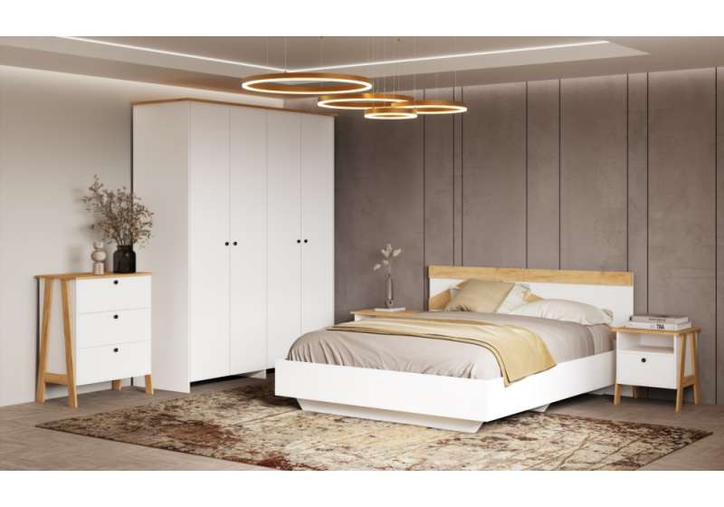 Кровать Теодора 160х200 белый / крафт золотой (165x203,2x).