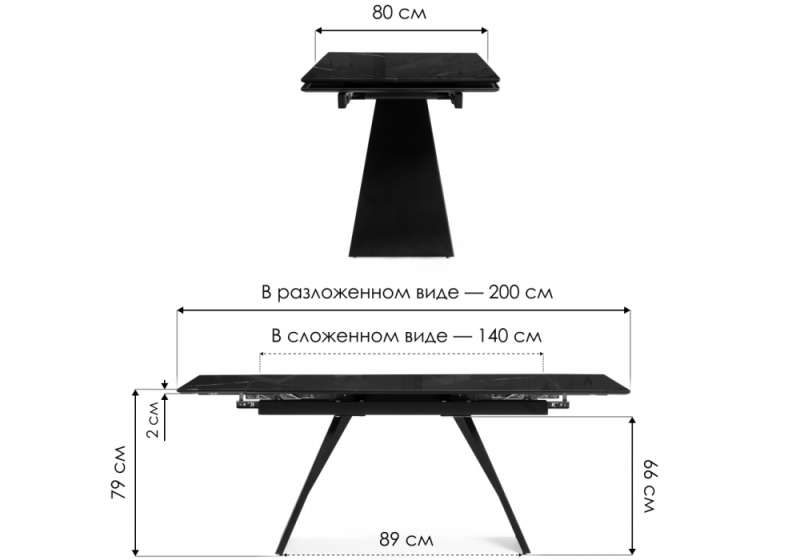 Стол стеклянный Хорсборо 140(200)х80х79 обсидиан / черный (80x79)