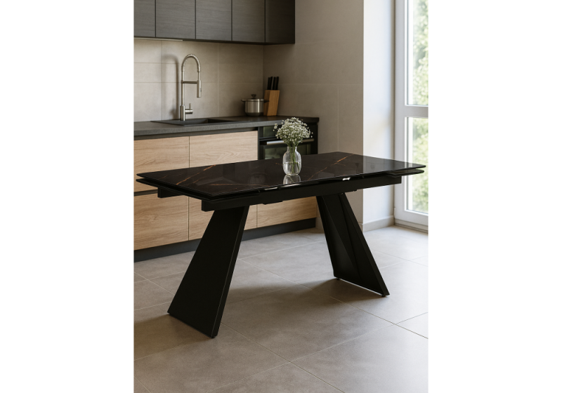 Стол стеклянный Хорсборо 140(200)х80х79 обсидиан / черный (80x79).