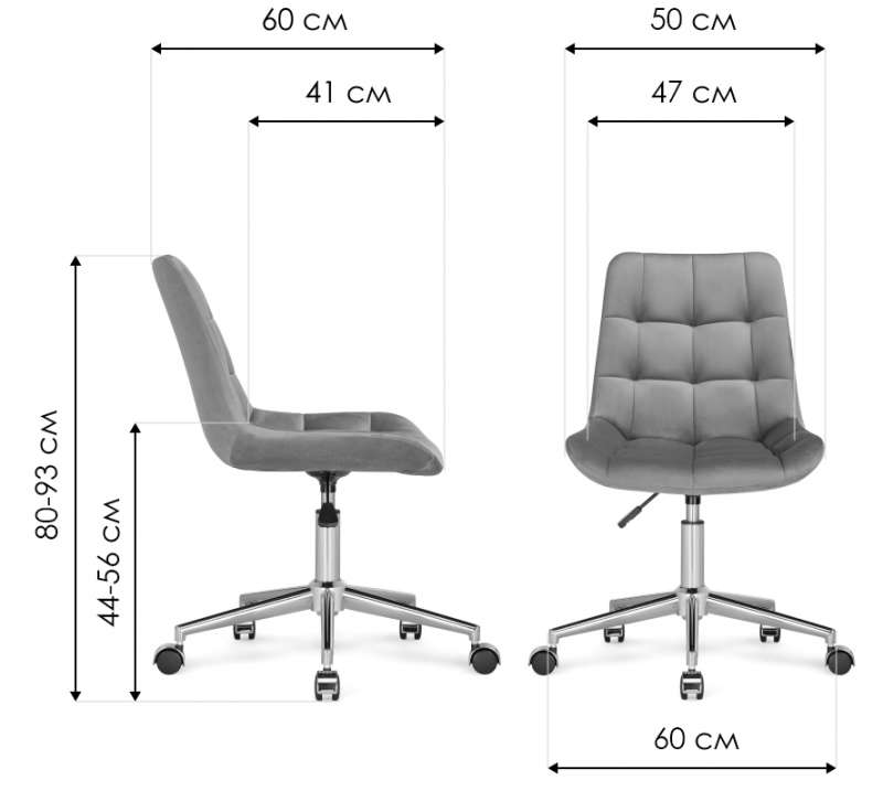 Диаметр крестовины: 63 см. Высота спинки: 38 см.